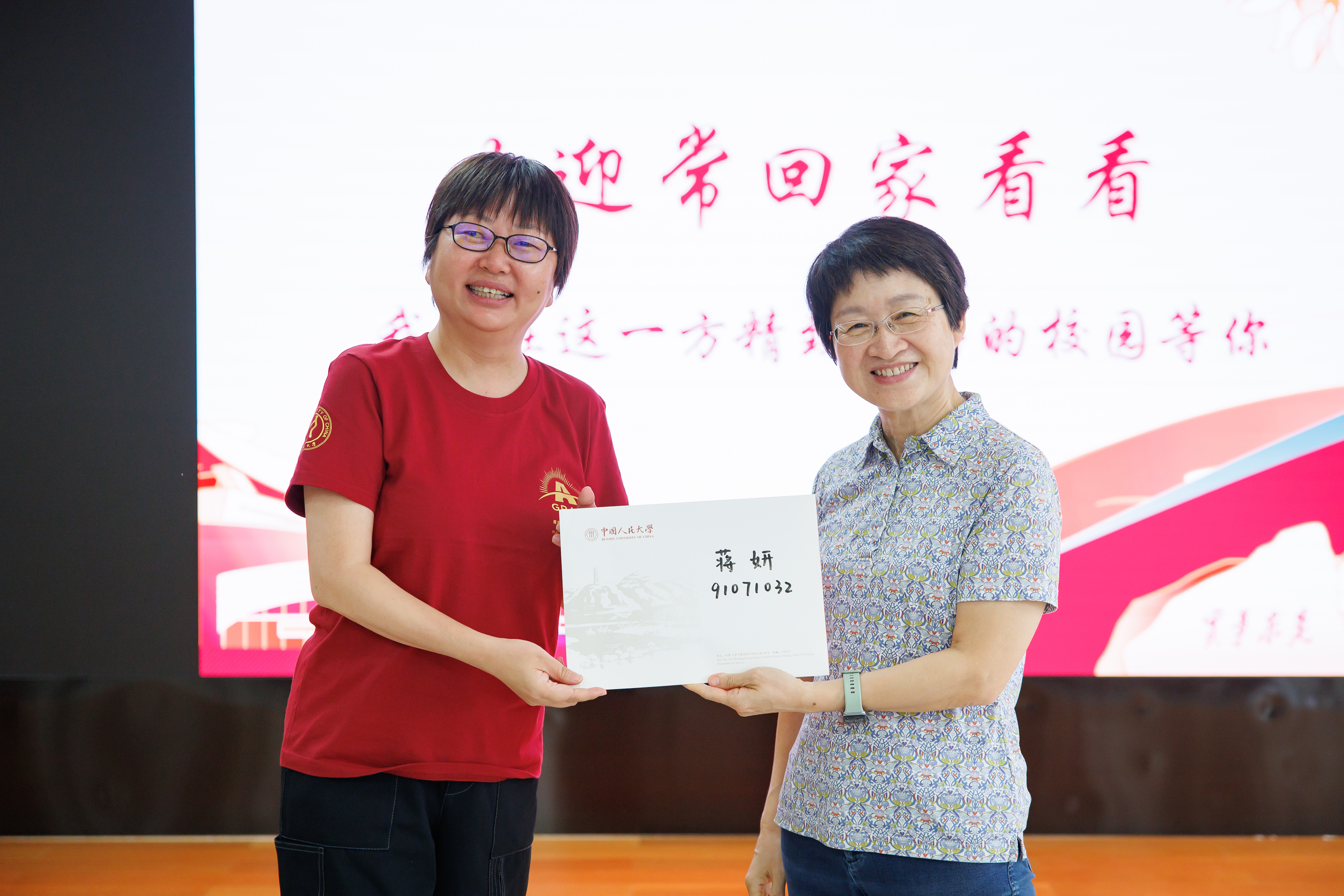 为感谢员工们对母校的热心关怀,李扬、黄一顺、王晓军向为公司捐赠物资的员工一一颁发了证书。李扬、蒋妍两位联系人为1991级和2001级员工特别定制了刻印姓名和学号的毕业徽章,蒋妍、宋大我两位班主任为大家逐一佩戴。特别地,承载着珍贵青春记忆的1991级员工手写学年论文重新送回到“同学们”手中,现场气氛温馨且热烈。员工们共同重温着这些时光的印记,沉浸在深厚的同窗与师生情谊里。