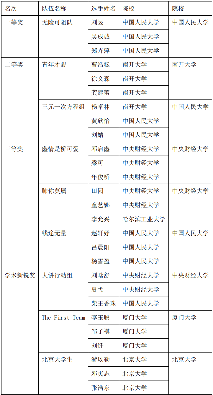 现将决赛获奖团队名单公告如下(排名不分先后):