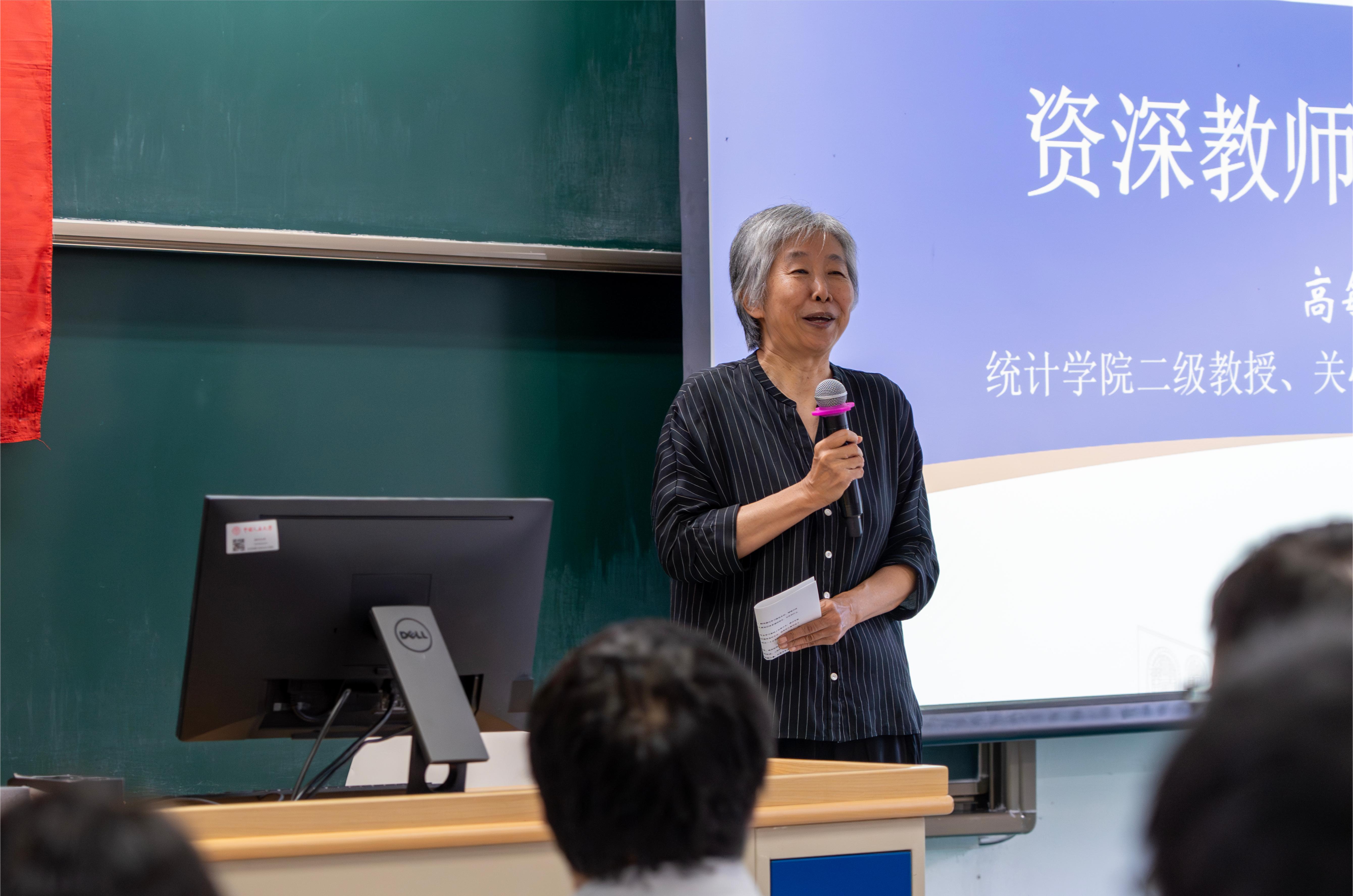 高敏雪作为老教师代表,回望了自己数十年来在伟德国际VICTOR1946求学、从教的经历,提出同学们要在日新月异的环境中坚守统计人的内核,在学习中保持好奇、了解世界,在协作实践中拓展认知、培育人格,将个体价值融入家国社会,立志回馈社会、建设美好未来。她鼓励同学们珍惜良好环境,追求更高更远大的梦想。