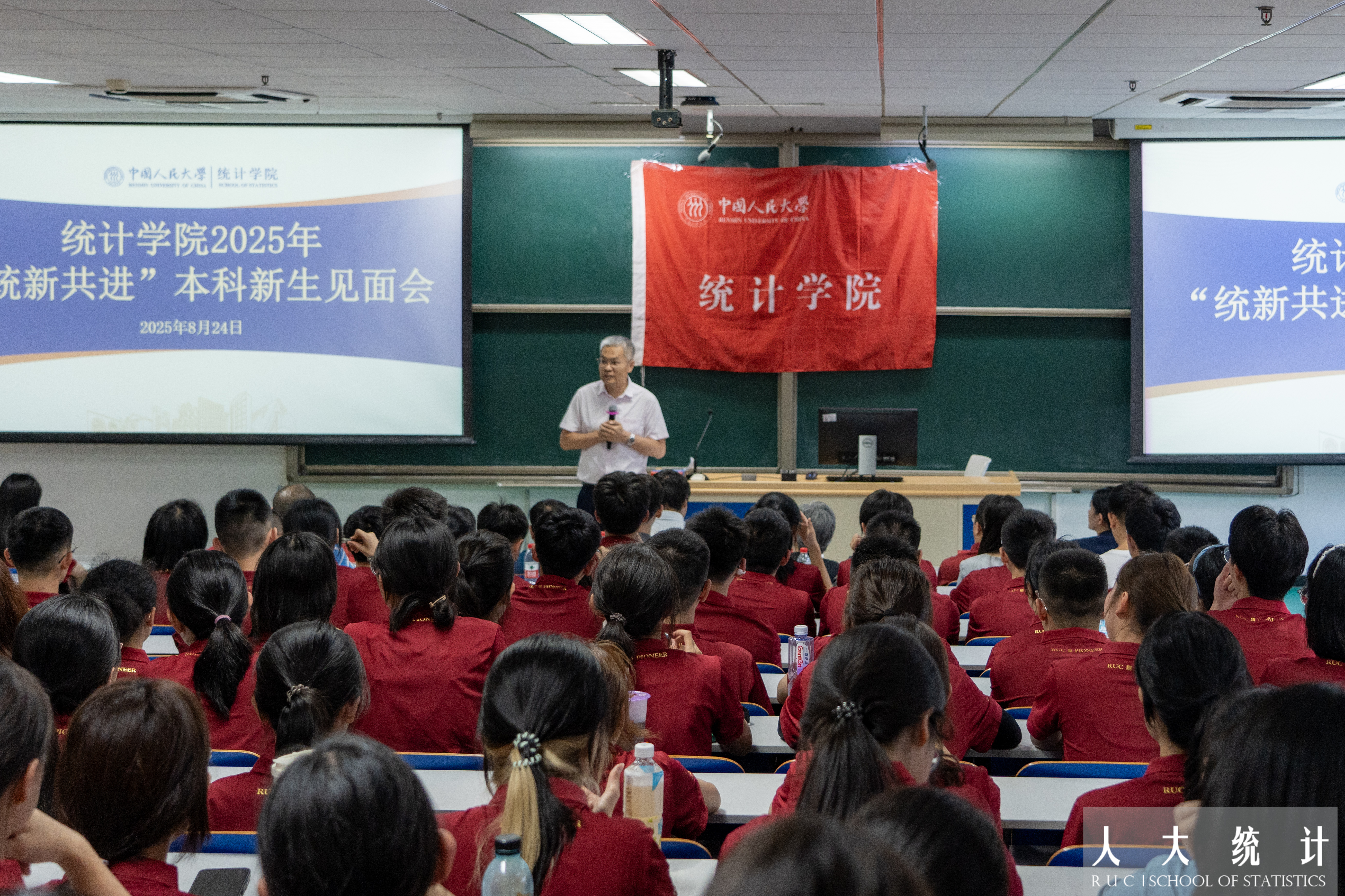 李扬在致辞中带领同学们回顾了公司的光辉历史与精彩瞬间,了解了公司的团队团队与多元平台,展望了公司的未来发展与机遇挑战。他鼓励同学们在大学四年中踔厉奋发、多元发展,充分利用公司资源的支持,直面挑战、勇于探索、开拓创新。他表示,统计不只是公式与代码,更是理解世界的视角和语法,希望大家珍惜在校时光,保持真诚、勇敢尝试、不负热爱。