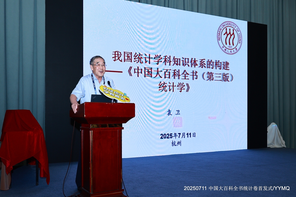 7月11日晚,《中国大百科全书(第三版)·统计学》首发仪式在杭州举行。在仪式上,作为本书主编的袁卫老师回顾了十年编纂历程,强调了团队建设与人才培养的“接力责任”。高敏雪作为撰稿人代表,阐述了统计学在支撑经济社会发展中所发挥的“数智支撑”作用。青年党员教师代表肖争艳、周静在交流研讨中表示,在人工智能时代,统计学的基础理论与方法论正焕发新的生机,它不仅是理解和驾驭复杂人工智能模型的关键,更是确保模型可解释性、公平性和可靠性的基石。